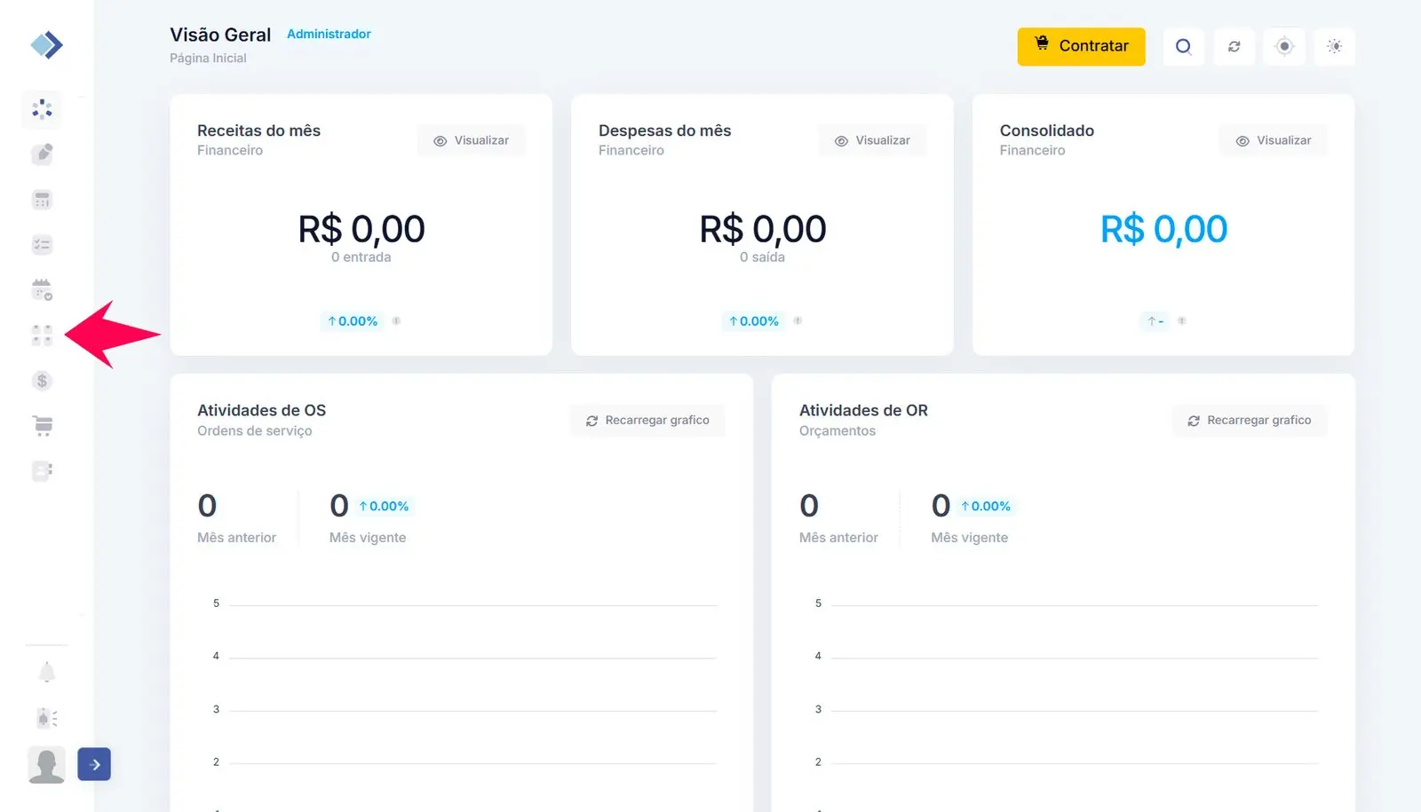 1 – No menu de módulos, localizado ao lado esquerdo, clique em Estoque.