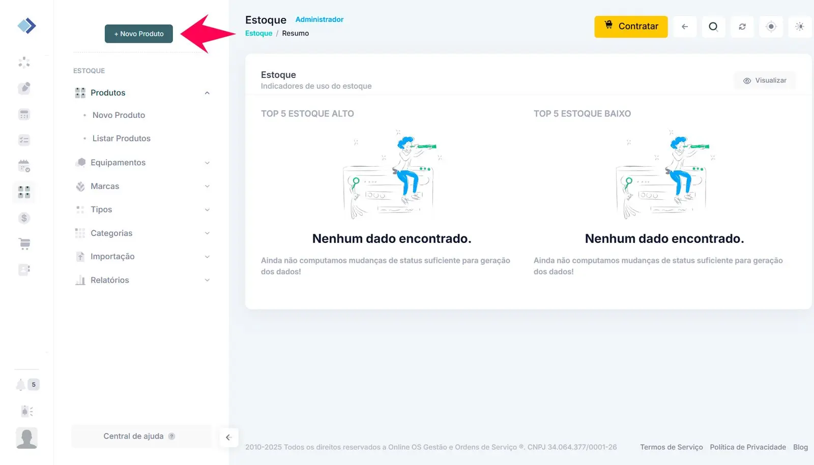 2 – Abra o menu e clique no botão + Novo Produto.