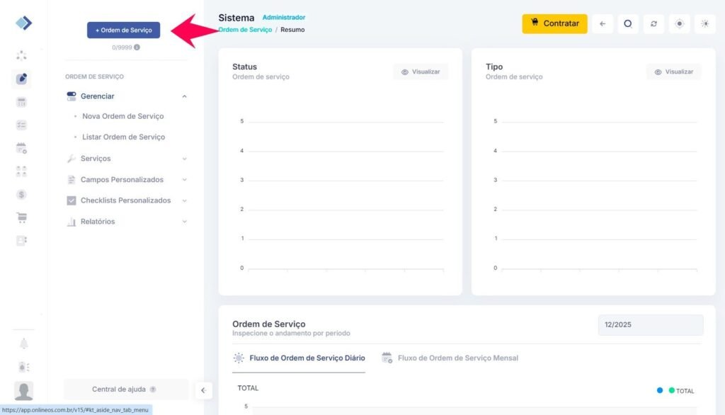 Para criar uma ordem de serviço no Online OS, siga estes passos: