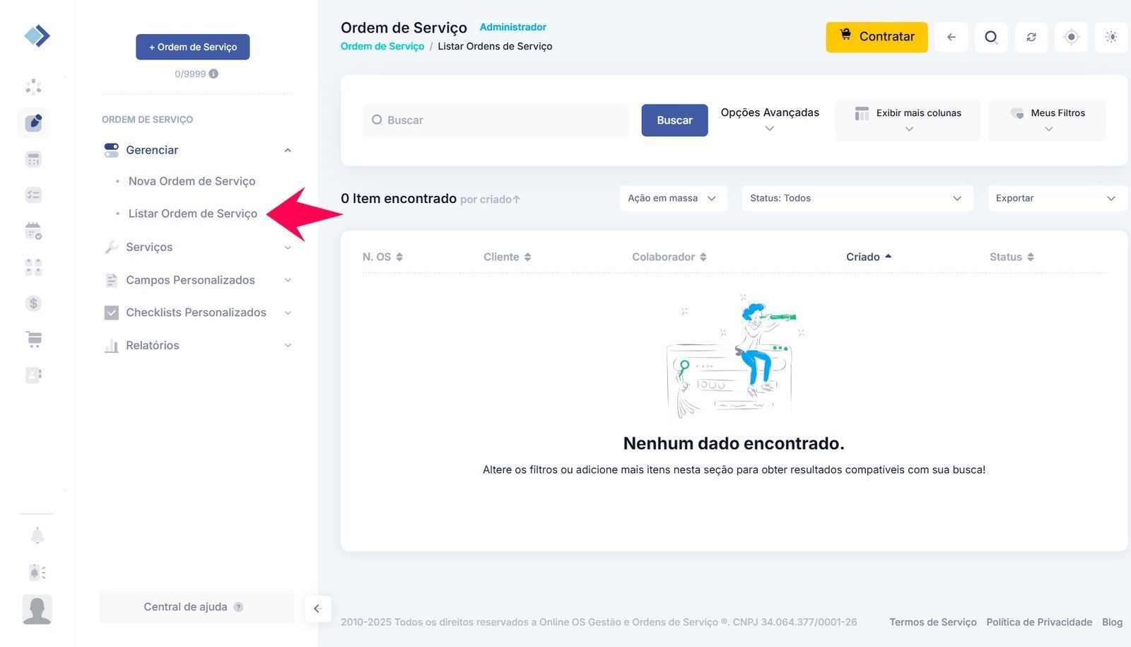 Após cadastrar suas ordens de serviço no Online OS, siga estes passos para visualizá-las: